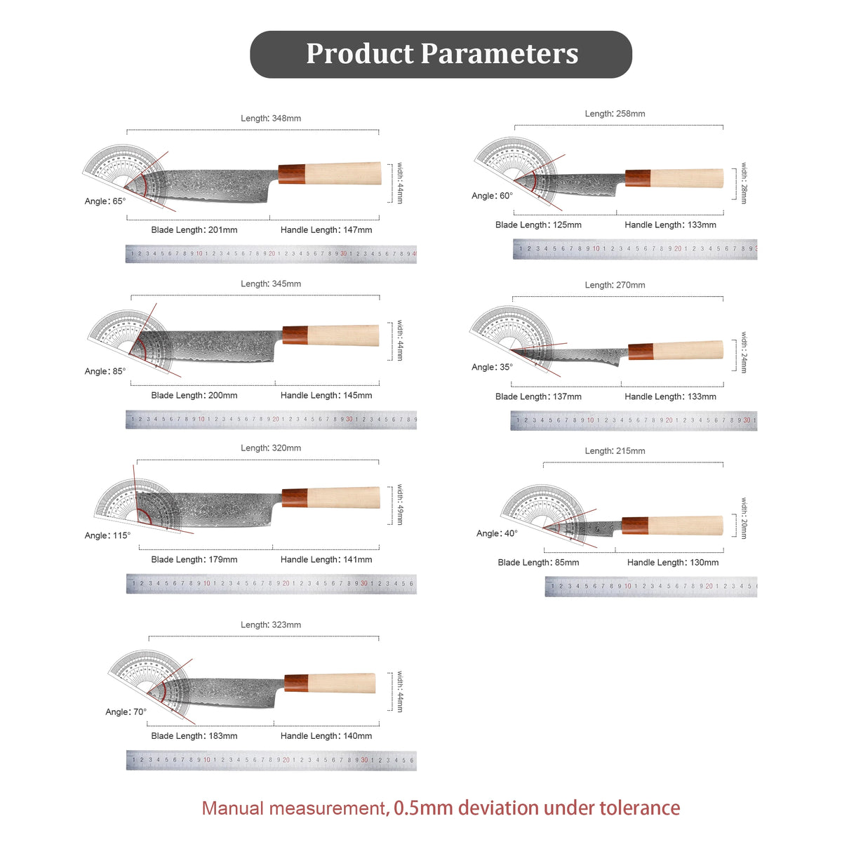 These knives, featuring premium maple wood handles that perfectly complement the stunning blade design, are a testament to Japan's rich tradition of craftsmanship. Engineered with a hardness of 60±2 HRC, they maintain an edge that is both super sharp and remarkably rust-proof, ensuring longevity and performance in your kitchen.