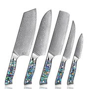 XITUO 5-Piece Japanese Knife Set with Damascus Steel and Abalone Handle - 5PCS full set